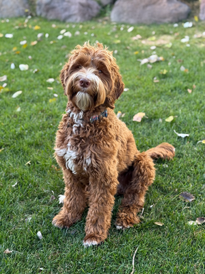 Miss Winnie is our perfect "family dog" mama. She loves to play, is confident & social, and settles nicely. She's never met an animal she doesn't like, and even has a cat friend in her neighborhood. She loves to say hi and give a handshake to all the young school kids that pass her home. As she's grown, her coat has gotten richer in color.